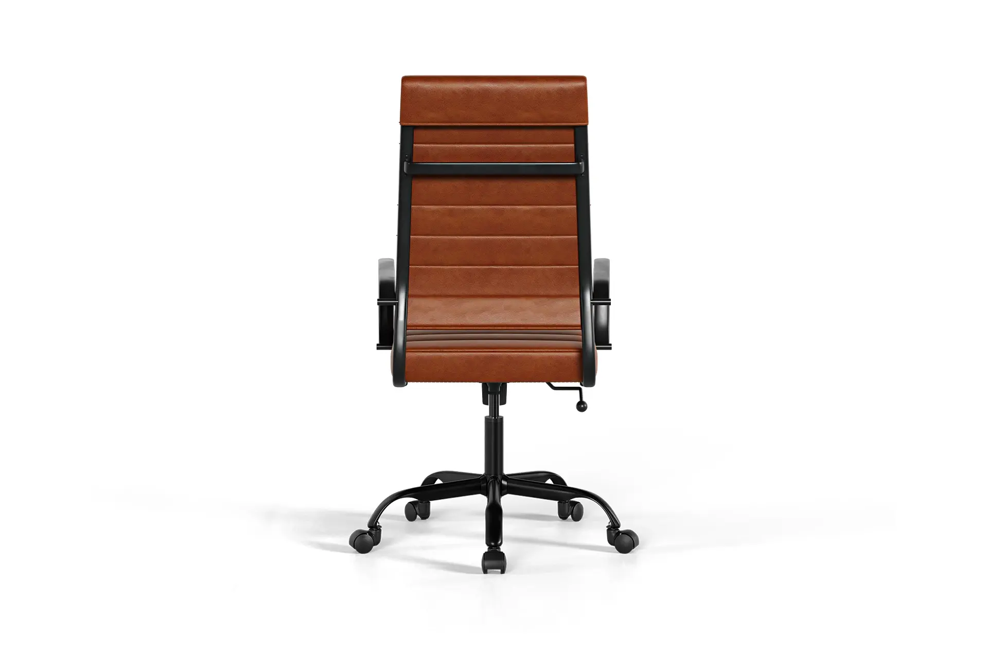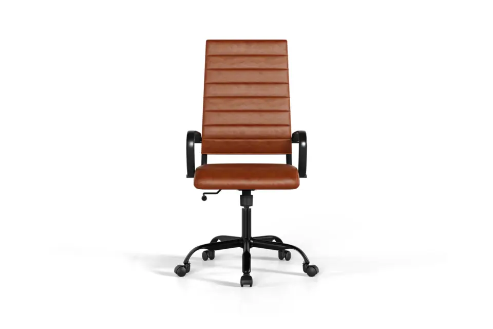 The Laguna High Back Office Chair with Wheels in Brown Vegan Leather and Black Base embodies timeless sophistication with modern ergonomic care. Its tall backrest, supple vegan leather, and strong black base bring warmth and elegance to any workspace. Designed with lumbar support, a knee-tilt mechanism, and adjustable height, it promotes natural posture and lasting comfort. With 360° swivel and durable components, Laguna adapts seamlessly to your working rhythm. More than a chair, it transforms offices into calm, stylish retreats for everyday productivity. -